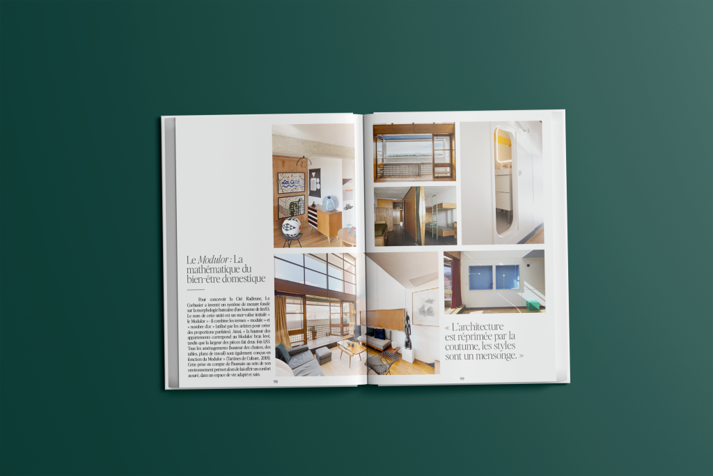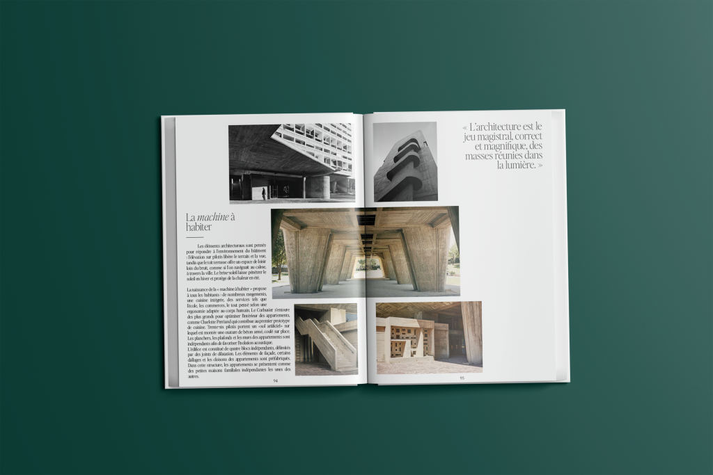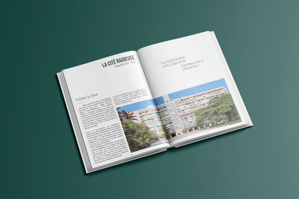 Projet fictif – Conception graphique et mise en page d’un ouvrage dédié à Le Corbusier à travers quatre grandes thématiques : la peinture, l’architecture, la sculpture et le design. Ici, un focus spécifique sur l’architecture, avec une attention toute particulière portée à la Cité Radieuse de Marseille.De la couverture aux pages internes, un travail soigné alliant esthétique et lisibilité pour sublimer ses travaux emblématiques.